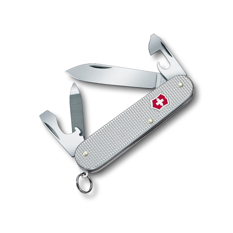 Hoja grande / Abrelatas / Destornillador 3 mm / Destapador / Destornillador 6 mm / Pela cables / Lima de uñas / Limpiauñas / Anilla
