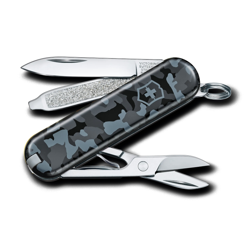 Hoja pequeña / Tijeras / Lima de uñas | Destornillador 2.5 mm / Anilla / Pinzas / Palillo de dientes / Lima de uñas