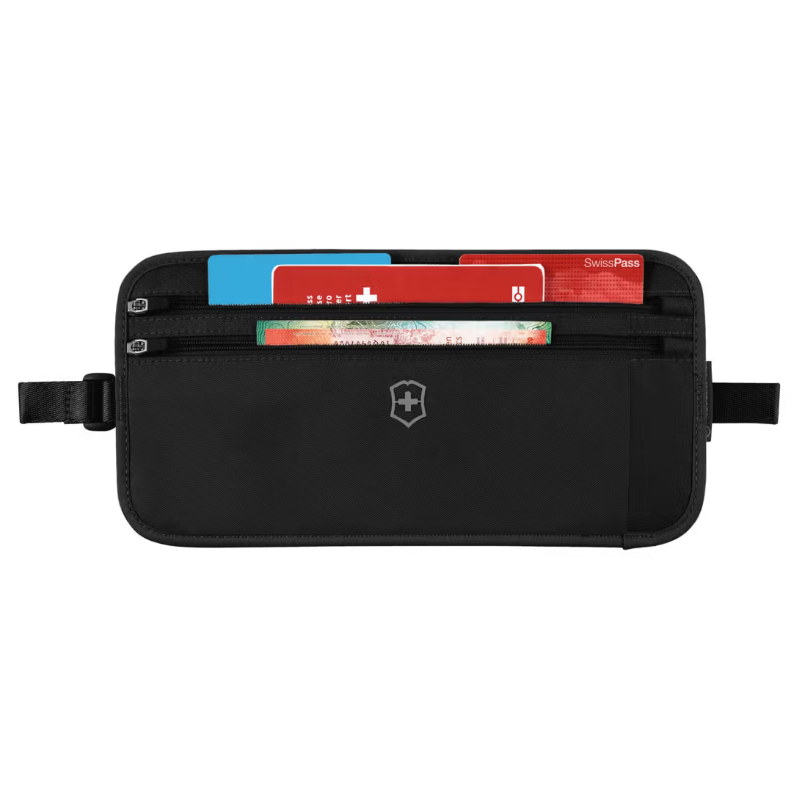 Un accesorio de viaje ultradelgado y ligero que se desliza fácilmente bajo la ropa, pasando desapercibido. Está fabricado en poliéster y cuenta con características de seguridad avanzadas: