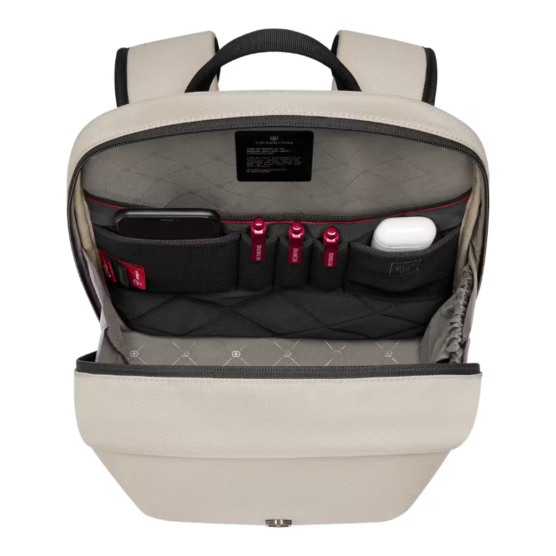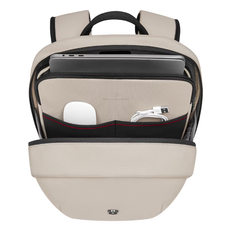 Una mochila urbana y funcional hecha de poliéster reciclado (rPET), diseñada para el uso diario. Cuenta con un compartimento acolchado para una laptop de hasta 15.6″ y un organizador extraíble. Los elementos reflectantes aumentan la visibilidad.
