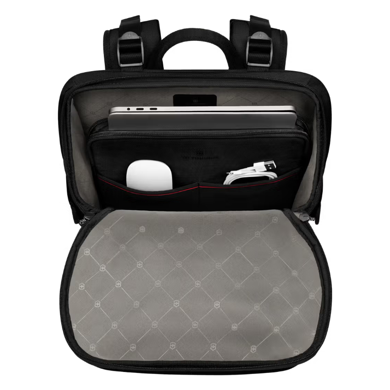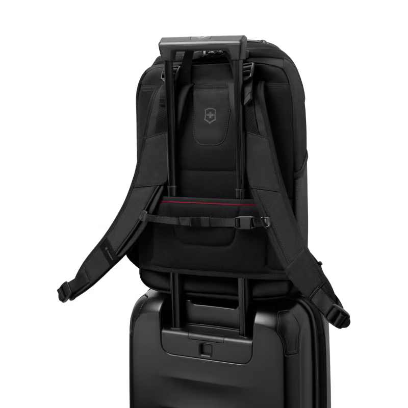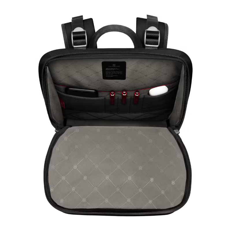 Mochila optimizada para el viajero y profesional moderno. Fabricada con poliéster reciclado, es resistente a la abrasión e incluye forro antimicrobiano y detalles reflectantes. Diseñada para una laptop de hasta 15.6″ y una tablet de 11″.