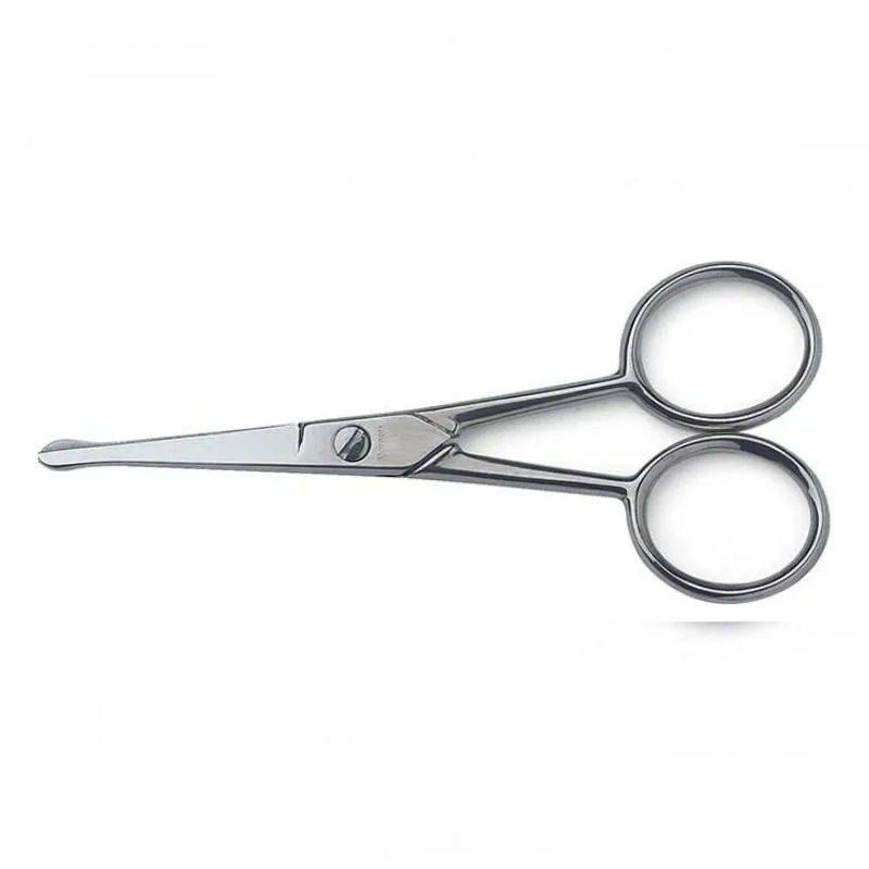 Tijeras diseñadas para recortar el vello de la nariz y los oídos de forma segura. Se caracterizan por tener puntas romas y redondeadas para evitar pinchazos accidentales, garantizando un aseo personal seguro y preciso.